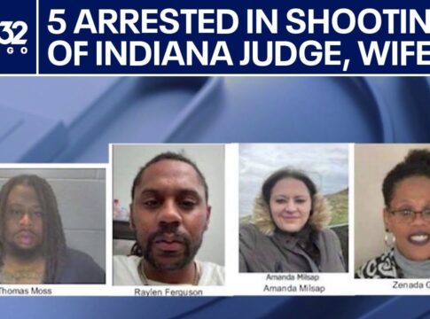 Judge Meyer sustained a gunshot wound to his arm while his wife Kimberly was struck in the hip during Sunday’s attack. Both victims are recovering from their injuries with medical treatment. The Lafayette Police Department announced the arrests late Thursday, identifying the suspects as Thomas Moss, 43; Raylen Ferguson, 38; Blake Smith, 32; Amanda Milsap, 45; and Zenada Greer, 61. Three suspects are from Lafayette, while Ferguson and Greer hail from Kentucky.